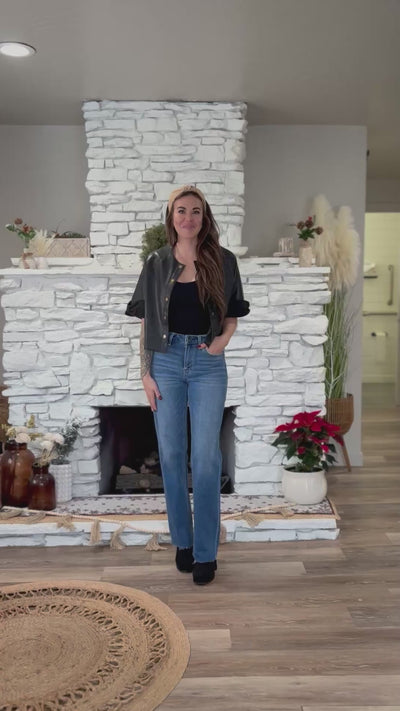Meet the LIVINGSTON JACKET—your new favorite layer for effortless cool. This sleek PU jacket gets a luxe upgrade with soft suede trim that adds texture and sophistication. The short sleeves keep things modern and versatile, perfect for layering over tees or dresses. Whether you're heading out for brunch or a night on the town, this jacket strikes the ideal balance between edgy and elegant. Throw it on and instantly elevate your vibe.